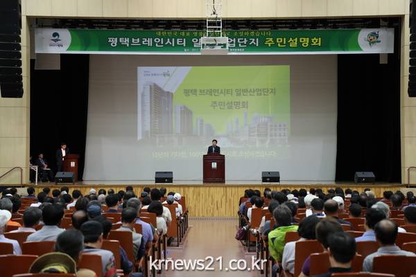 평택시(시장 공재광)가 지난 17일 북부문화예술회관에서 브레인시티 사업관련 토지주 및 이해관계자 등 400여명이 참석한 가운데 주민 설명회를 개최했다.