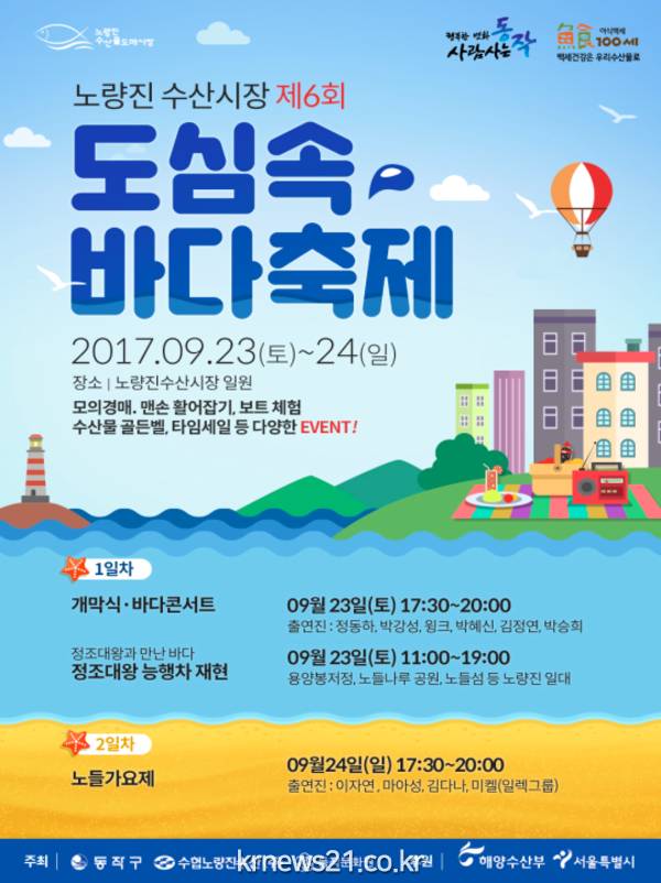 서울 노량진수산시장에서 23일∼24일 ‘제6회 도심 속 바다축제’가 열린다.
