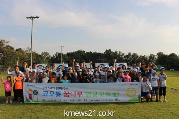 코오롱 엑스텐보이즈 양궁 팀은 지난 23일 오전과 오후 2회로 나누어 안산시 이동에 위치한 코오롱 양궁 연습장에서 지역 초․중학생 100명을 대상으로 ‘안산시와 함께하는 코오롱 꿈나무 양궁교실’을 개최했다.