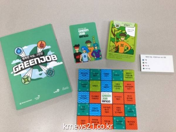 이와 더불어 ‘빙고게임’을 모티브로 한 ‘그린잡 보드게임’을 통해 보다 쉽고 흥미롭게 진로탐색을 할 수 있도록 구성했다. 이번 청소년 녹색진로교육 교구는 전국의 중·고등학교, 청소년단체, 진로직업체험센터 등을 대상으로 2000부를 배포한다.