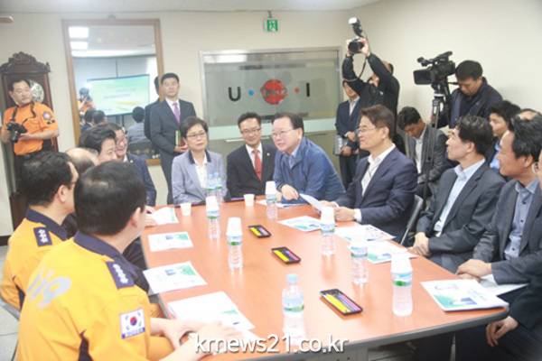김부겸 행정안전부 장관이 노웅래 국회의원, 박홍섭 마포구청장 등 8명과 함께 지난 30일 오전 10시 마포소방서(서장 박순일)를 방문했다.