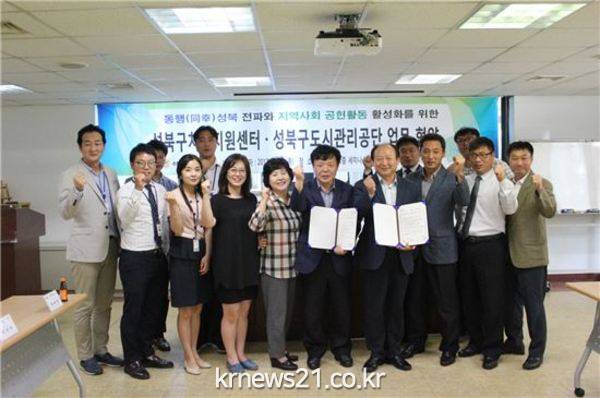 서울 성북구(구청장 김영배) 치매지원센터는 성북구 도시관리공단과 업무협약을 체결하고 지역사회 공헌을 위한 동행(同幸)에 나선다고 2일 밝혔다.
