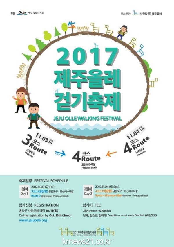 사전 신청은 오는 15일(일)까지 제주올레 홈페이지를 통해 가능하며, 사전 신청 참가비는 1인 2만원으로 20인 이상 단체, 어린이 및 청소년, 장애인은 1만5000원이다.