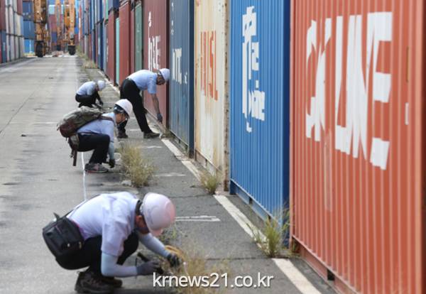 부산항 감만부두에 대해서는 발견지점 반경 100m 이내 컨테이너는 전량 소독 후 반출이 가능하지만 그 밖에는 오늘 12시부터 소독 절차 없이 반출을 허용할 계획이다.