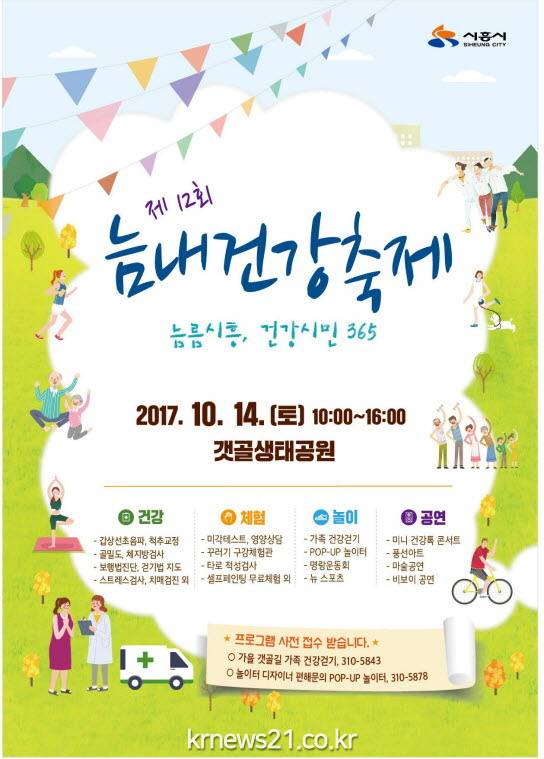 시흥시(시장 김윤식)는 오는 10월 14일 시흥갯골생태공원에서 ‘늠름 시흥, 건강시민 365!’라는 슬로건으로 건강의 소중함을 새기고, 건강한 놀이문화 등을 체험할 수 있는 건강 한마당의 장, <</span>제12회 늠내 건강축제>를 개최한다.