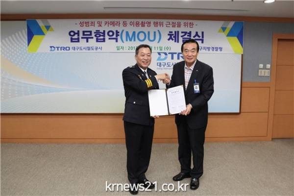 대구도시철도공사는 대구지방경찰청과 역사 내 불법촬영 근절을 위한 업무협약을 체결했다고 11일 밝혔다.