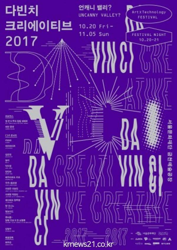 서울문화재단(대표이사 주철환) 금천예술공장은 국내 미디어아트 분야 신진예술가들의 데뷔 무대이자 국제 미디어아트의 현재를 체험할 수 있는 아트×테크놀로지 페스티벌 <다빈치 크리에이티브 2017 : 언캐니 밸리?>를 10월 20일(금)부터 11월 5일(일)까지 개최한다.