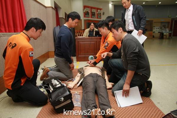 훈련은 실제 출동하는 구급대원 팀별로 심정지 환자 마네킨을 두고 ▲보호자 문진 ▲환자평가 ▲현장 응급처치 역할분담 ▲자격별 응급처치 등의 내용으로 이론을 배우고 직접 실습하는 시간을 가진다.