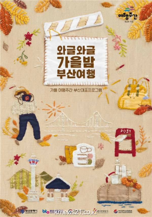 부산시와 부산관광공사는 한국관광공사 부산울산지사, 부산관광협회와 함께 21일부터 11월 5일까지 ‘와글와글 가을밤 부산여행’을 주제로 가을 여행주간 부산 프로그램을 운영한다고 17일 밝혔다.