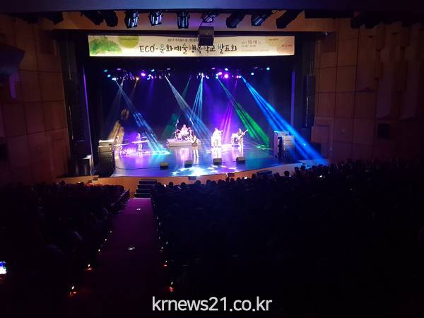 안산시(제종길 시장)와 안산 교육지원청(김이형 교육장)은 지난 18일 안산문화예술의전당 달맞이극장에서 학부모·학생·시민 1,000여명이 참석한 가운데 ‘2017년 Eco-문화예술행복학교 발표회’를 개최했다.