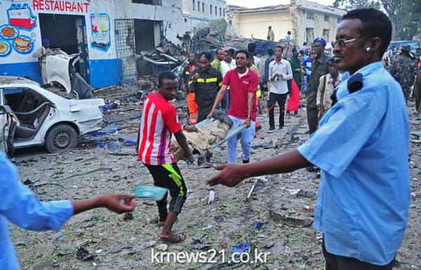 소말리아 수도 모가디슈의 한 호텔 앞에서 28일(현지시간) 2대의 차량이 폭발했다. 테러로 의심되는 이번 폭발로 최소 23명이 숨지고 30여 명 이상이 다쳤다. 지난 14일에도 모가디슈 시내 중심부에서 연쇄 폭탄 공격으로 적어도 302명이 숨지고 4백 여 명이 부상, 70여 명이 실종 상태다.