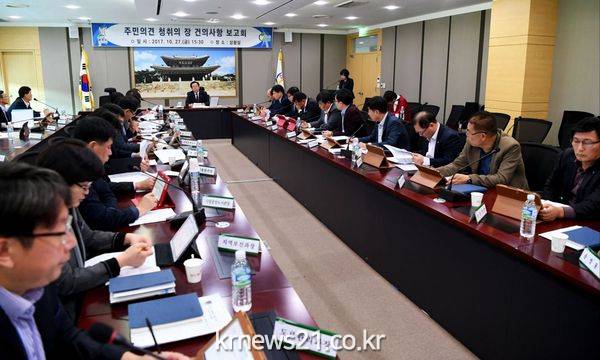 광주시는 지난 27일 시청 상황실에서 조억동 시장을 비롯한 국·소장, 실과장과 읍면동장 등 50여명이 참석한 가운데 ‘2017년 주민의견 청취의 장 건의사항 보고회’를 개최했다.