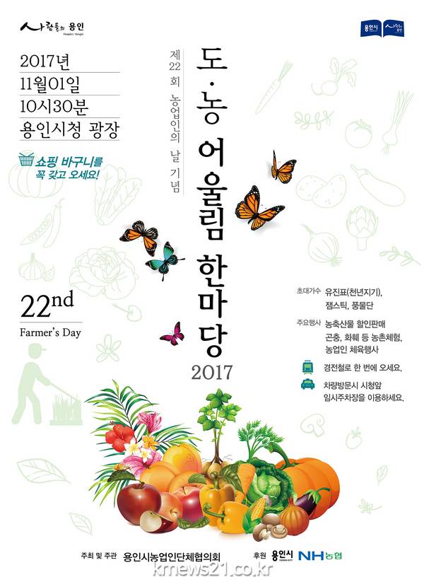 용인시는 다음달 1일 시청 광장에서 농업인들과 도시민이 서로 화합하고 소통하는 ‘도, 농 어울림 한마당 행사’를 개최한다고 27일 밝혔다.