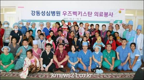 강동성심병원은 2016년부터 매년 우즈베키스탄 의료봉사를 다니며 구순구개열 환아를 치료해 왔으며, 현재까지 총 450여명을 치료한 것으로 알려져 있다.