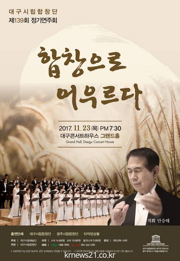 한편 이번 ‘합창’ 공연 매진기록에 이어 대구콘서트하우스가 준비하고 있는 연말공연들이 매진 또는 소량의 좌석을 남겨두고 있는 등 클래식음악에 대한 열기가 그 어느때보다 뜨겁다.