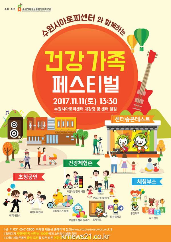 수원시 환경성질환아토피센터는 11일 오후 1시 30분 장안구 조원동 센터에서 ‘수원시 아토피센터와 함께하는 건강가족페스티벌’을 연다.