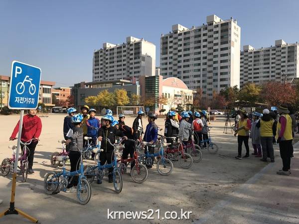 이날 안전대회에는 올해 자전거안전교육을 받은 10개 초등학교 11개 반 학생 284명이 참가해 ‘자전거 OX 퀴즈’, ‘자전거 코스 주행’, ‘이어달리기’ 등 자전거를 활용한 게임을 하며 자전거를 안전하게 타는 방법을 배웠다.