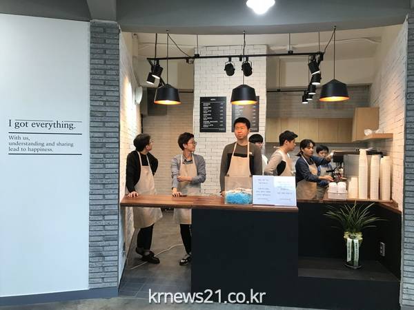 카페는 오전 8시부터 오후 5시까지 운영되며, 강동구 장애인직업학교에서 바리스타 전문가 과정과 안전관리 및 서비스실무 과정을 수료한 4명의 장애인 바리스타가 향긋하고 맛 좋은 커피를 대접할 예정이다.