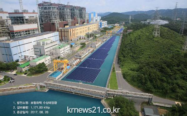 발전소 내 취수로 유휴수면을 활용한 보령발전본부 수상태양광 발전소의 설비용량은 1.17MW으로 350W 태양광 모듈 3,368장으로 구성되었으며, 설치면적은 16,200m2로 수면위에 안정적으로 떠 있는 부유식으로 설계, 현장에서 직접 조립, 제작하여 설치됐다.