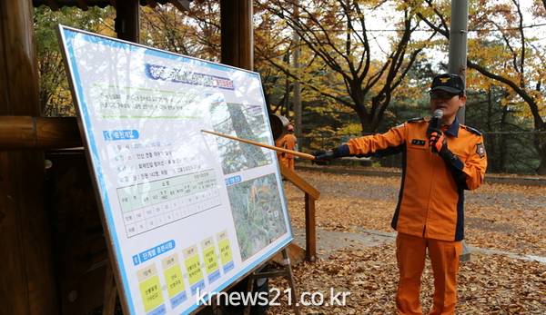 이날 훈련은 11월 불조심 강조의 달을 맞아 화재예방 경각심을 고취시키고 산불이 발생함에 따라 대처능력을 배양시키기 위해 마련됐다. 대원들은 훈련 도중 비가 옴에도 불구하고 제 역할을 수행하는데 매진했다.