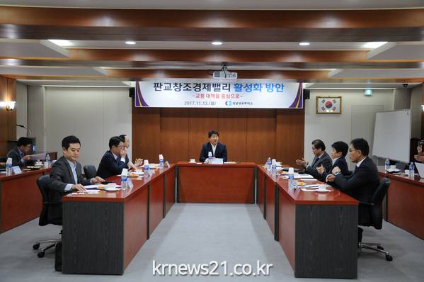 성남상공회의소(회장 박용후)는 11월 13일(월) 성남상공회의소 3층 회의실에서「판교 창조경제밸리 활성화 방안 간담회」를 개최하였다.