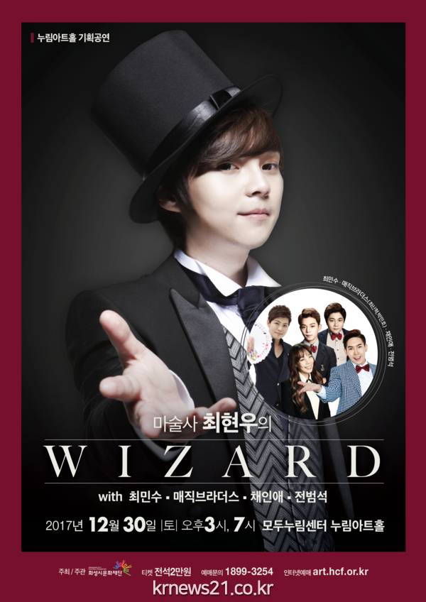 2017년 한해를 보내며 온 가족이 즐겁고 유쾌한 시간을 만들 수 있도록 마련된 누림 아트홀 연말특별기획공연 <</span>마술사 최현우의 WIZARD>는 2017년 12월 30일(토) 오후3시, 7시 2회에 걸쳐 화성시청 옆에 위치한 누림 아트홀에서 열린다.