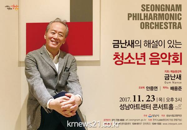 성남시립교향악단은 오는 11월 23일 오후 3시 성남아트센터 콘서트홀에서 ‘금난새의 해설이 있는 청소년 음악회’를 연다.