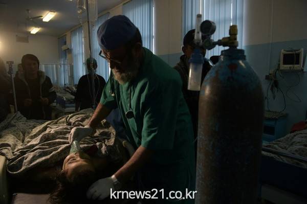 아프가니스탄 수도 카불에서 16일(현지시간) 정치인 지지모임을 겨냥한 자폭테러가 벌어져 경찰과 민간인 등 최소 18명이 숨졌다. 현지 당국은 폭발로 경찰관 8명, 민간인 10명이 숨지고 10여 명이 부상했다고 밝혔다. 사진은 테러로 부상당한 기자가 병원에서 치료받고 있는 모습.