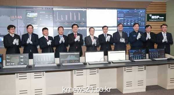 울산시와 한국동서발전은 20일 울산혁신도시 한국동서발전 대회의실에서 지역 11개 기관이 참여한 가운데 ‘MSP(Management Service Provider)센터 현판제막식 및 업무 협약식’을 가졌다. .