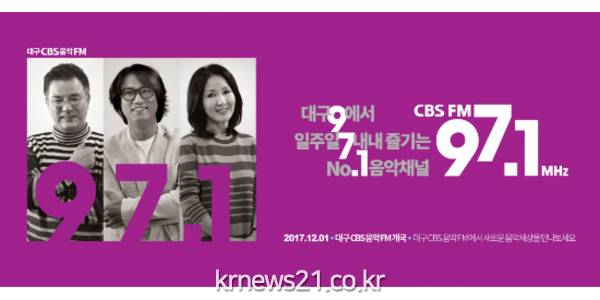 대구CBS는 방송통신위원회로부터 음악FM 신규설립 허가를 받아 주파수 97.1㎒, 출력 1㎾로 대구 전역을 포함해 경산, 구미, 칠곡과 성주, 고령 등 경북 일부지역을 가청영역(방송구역)으로 한 음악FM 방송을 12월 1일 개국한다.