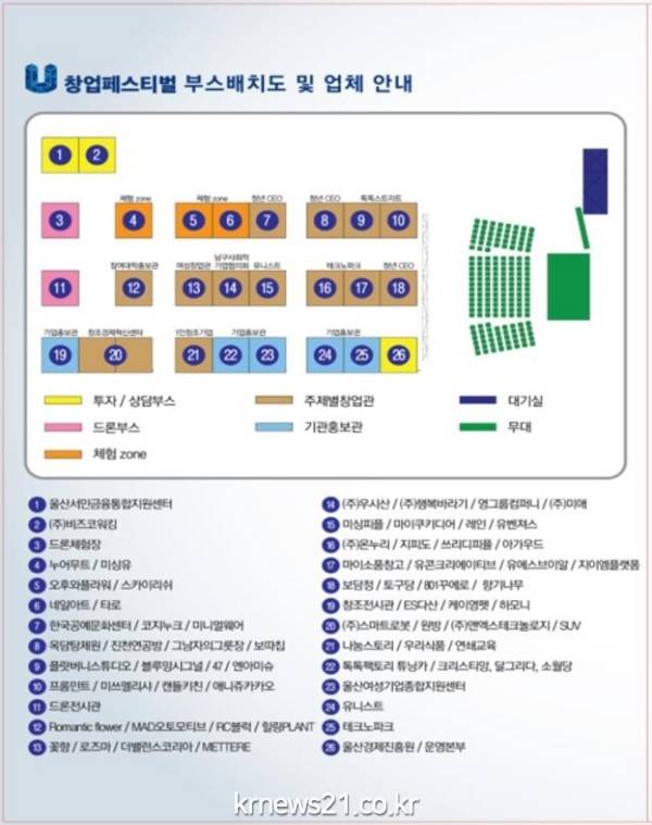 개회식은 24일 오전 10시 김기현 울산시장, 윤시철 울산시의회 의장, 권수용 지방중소벤처기업청장, 창업지원유관기관장, 유관기관 관계자 등 100여 명이 참석한 가운데 창업지원현황 동영상 상영, 유공자 표창, 전시부스 관람 등으로 진행된다.