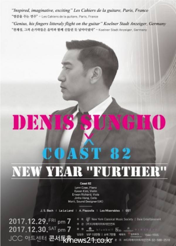 12월 29일(금)~12월 30일(토) 이틀간 대학로에 위치한 JCC아트센터에서 Denis SunghoXCOAST 82(드니 성호X코스트 82) 콘서트가 NEW YEAR ‘FURTHER’ 부제로 개최된다.