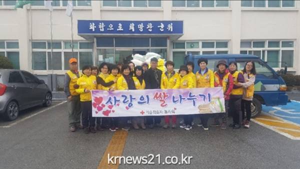 의흥면 적십자봉사회(회장 김수진)는 지난 24일 오후 박정찬 면장, 김수진 적십자봉사회장, 봉사자 등 20여 명이 참석한 가운데 의흥면사무소에서 '사랑의 쌀나누기' 전달식을 가졌다.