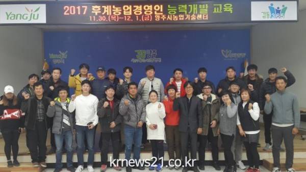 양주시(시장 이성호)는 지난 11월 30일부터 12월 1일까지 2일간 후계농업경영인(이하 ‘후계농’) 사업희망자 30여명을 대상으로 ‘2017년 후계농업경영인 능력개발 교육’을 농업기술센터 대강당에서 실시했다.