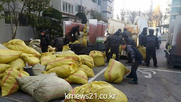 처리요청분량은 40,390마대 약 2.5톤 차량 650대 분량이다. 구는 공동주택에서 수거하여 모아둔 순수 낙엽을 무상 수거하여 포천의 친환경 농가에 무료로 제공할 예정이다. 낙엽은 퇴비 등으로 재사용될 수 있도록 은행잎, 비닐, 전지목 등 쓰레기와 철저히 분리된다.