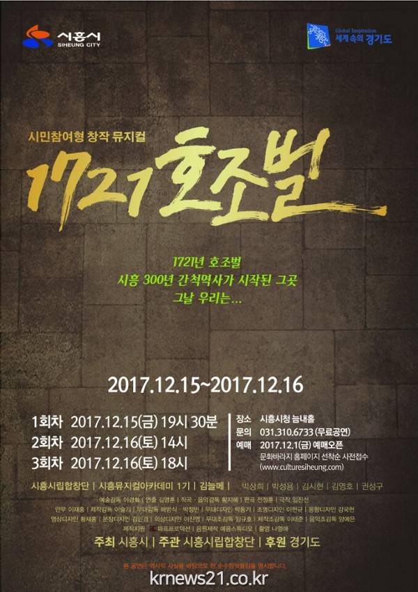 시흥시민의 문화갈증을 풀어줄 창작뮤지컬 <1721 </span>호조벌> 개최
