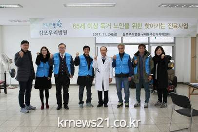 찾아가는 무료 건강검진은 2014년 구래동 주민자치위원회와 김포우리병원 간 MOU를 체결한 이래 매년 추진되고 있는 사업으로, 기본적인 건강 상담은 물론 혈액검사, 소변검사, 혈압과 당뇨 검사, X-Ray 촬영까지 진행하고 있다.