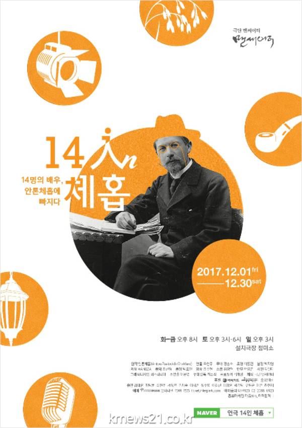 극단 맨씨어터가 10주년을 맞아 기념 공연으로 '14人(in)체홉'을 12월 한 달간 설치극장 정미소에서 공연한다.