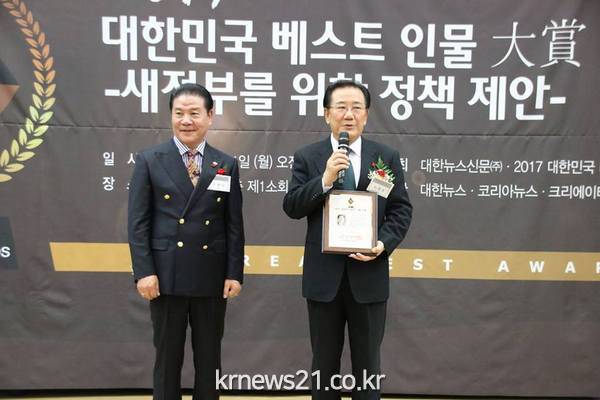박준영 국민의당 의원(영암군·무안군·신안군)은 11일 ‘2017 대한민국 베스트 인물 대상’을 수상했다.