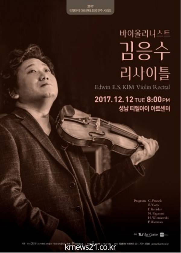 12일 <바이올리니스트 김응수 리사이틀>이 성남 티엘아이 아트센터에서 개최된다.