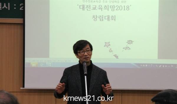 대전 91개 시민·사회단체가 참여하고 있는 '민주진보교육감 후보 단일화를 위한 대전교육희망 2018(이하 대전교육희망)'은 12일 오후 대전시청 세미나실에서 창립대회를 열었다.