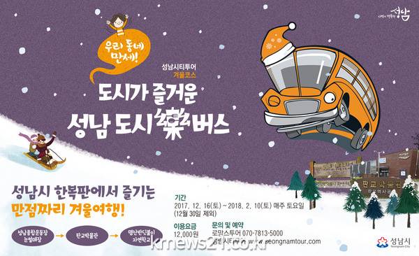 성남시는 관광객들의 요청에 따라 ‘시티투어 도시락(樂) 버스’ 운행 코스에 겨울 관광 상품을 새로 마련해 오는 12월 16일 첫 운행을 시작한다.