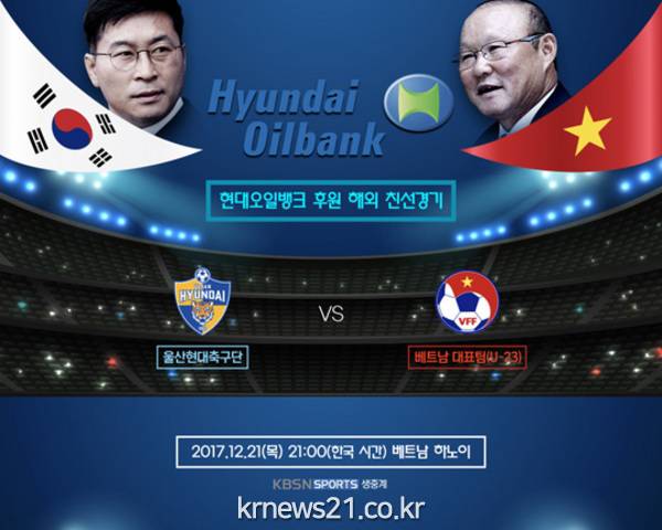 K리그 클래식 울산 현대가 오는 베트남 하노이에서 박항서 감독이 이끄는 베트남 U-23세 축구대표팀과 ‘현대오일뱅크 후원 해외친선경기’를 가진다.