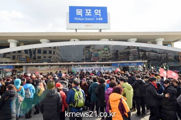 대전 무지개 산악회(회장 김창섭) 회원 450여명은 코레일 임시 전세열차를 이용해 지난 16일 11시에 목포역에 도착했다.