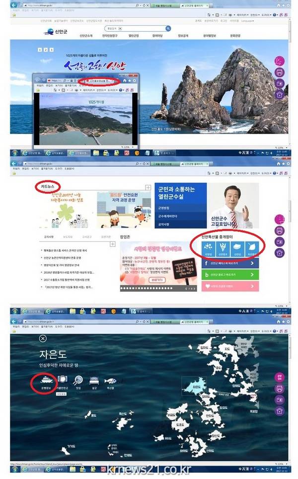 신안군 홈페이지(www.shinan.go.kr)는 2016년 출품한 첫 해 지방자치기관분야에서 최우수상을 차지하였으며, 금년에도 최우수 홈페이지로 선정됨으로써 지방자치단체로는 유일하게 2년 연속 수상을 하는 쾌거를 이루었다.
