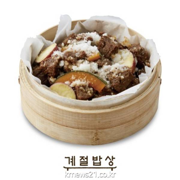 계절밥상 ‘눈꽃소고기찜’은 부드러운 소고기찜 위에 달콤한 단호박을 올리고 쌀가루를 뿌려 마치 눈이 소복하게 쌓인듯한 느낌의 겨울 특선 메뉴다.