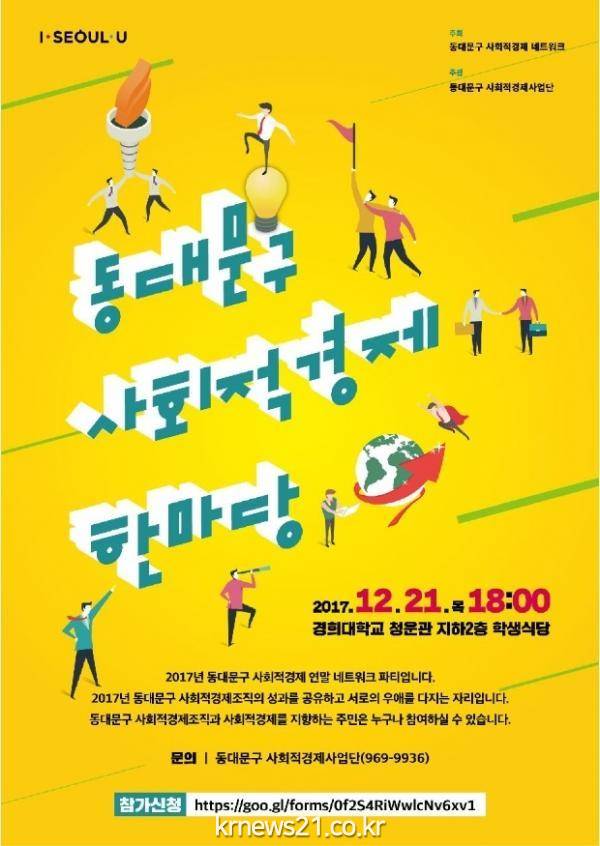 동대문구(구청장 유덕열)는 사회적경제기업의 이야기가 있는 사회적경제 한마당 행사가 오는 21일 오후 6시 경희대학교 청운관에서 열린다고 밝혔다.