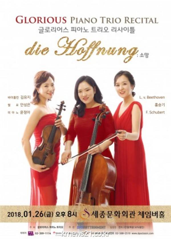2018년 새해를 맞아 아름다운 선율을 자랑하는 ‘글로리어스 피아노 트리오 리사이틀’이 2018년 1월 26일 오후 8시 세종문화회관 체임버홀에서 개최된다.