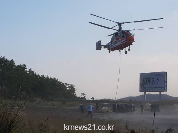 신안군은 비금면 선왕산 등산로에 안전한 산행을 위하여 시행하고 있는 등산로 정비사업에 산림청의 초대형 헬기 지원으로 각종 자재운반을 안전하게 운반하였다고 밝혔다.
