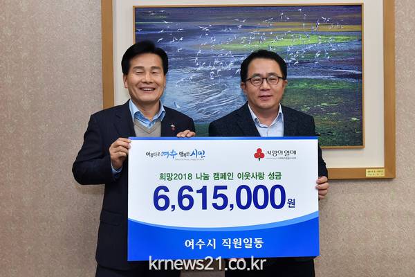 여수시청 전 공직자들이 십시일반 모은 1984만1000원이 희망 2018 나눔 캠페인 이웃돕기 성금으로 전달됐다.